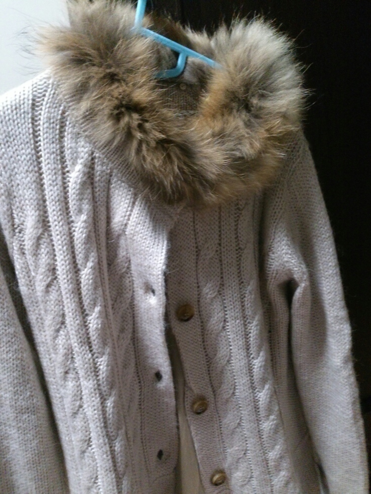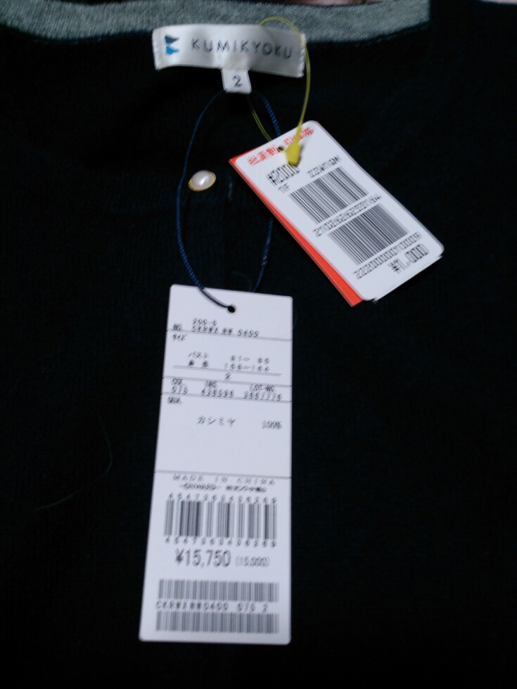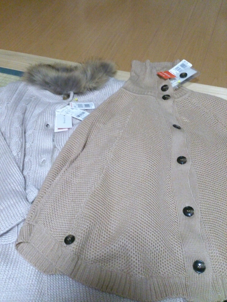 カシミアのカーディガン!( ・∇・) これは一番上のボタンだけ他のボタンと違うせいで、1000円。手触りが良い♪