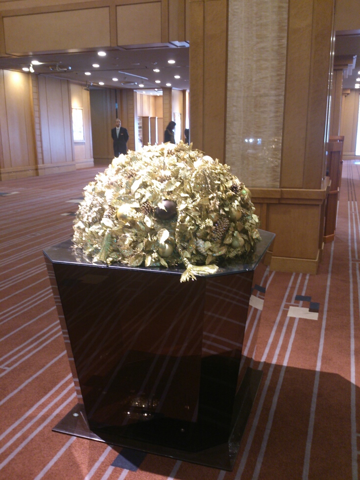 ロビーにある薔薇の球体はやはり人目をひきます。
