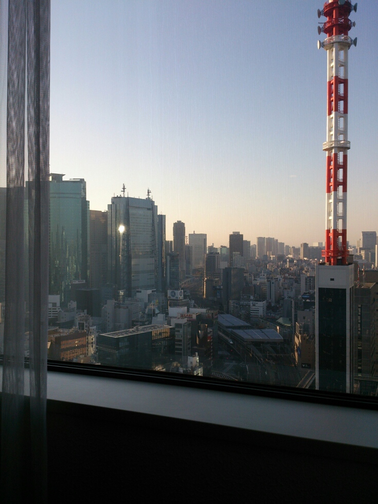 出窓からは東京の町並みが見渡せました。カーテンが自動で開閉するのも驚いた…( ´△`)