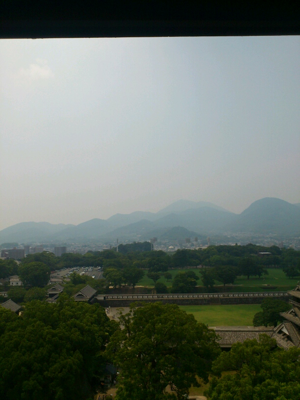 天守閣からの眺め。ほぼ無風でサウナ状態が辛かったです(--;) 外を眺めていると、隣に赤ちゃんを抱っこした女性と何故か目が合いました。話し掛けてみると、赤ちゃんはまだ10か月だそう。にこっと笑った瞬間がとても可愛いかったです!