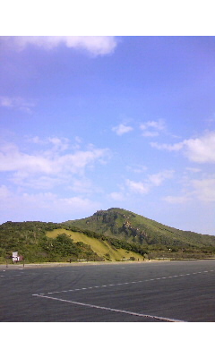 バスからうつした米塚。ぼこっと頂上がかけているのがわかります?