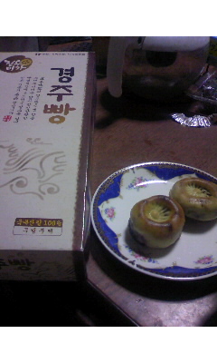 4日目の慶州・古墳公園での名物「慶州(キョンジュ)パン」。パンと書いてありますが、実際は饅頭ですー。