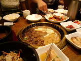 夕食は有名店らしい場所ですき焼に似たものとビビンバを食べました。